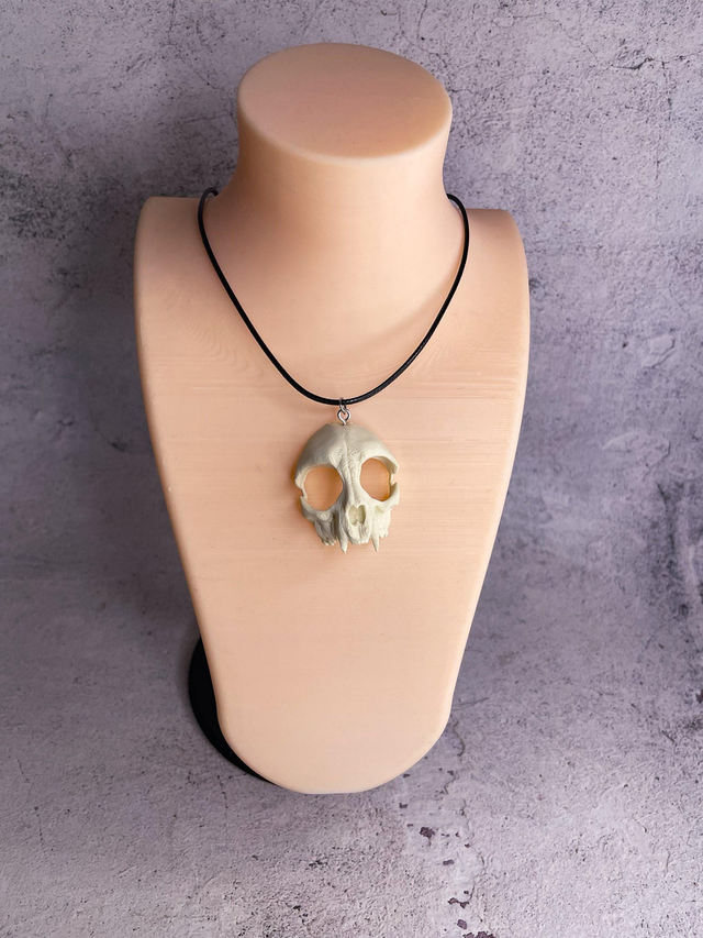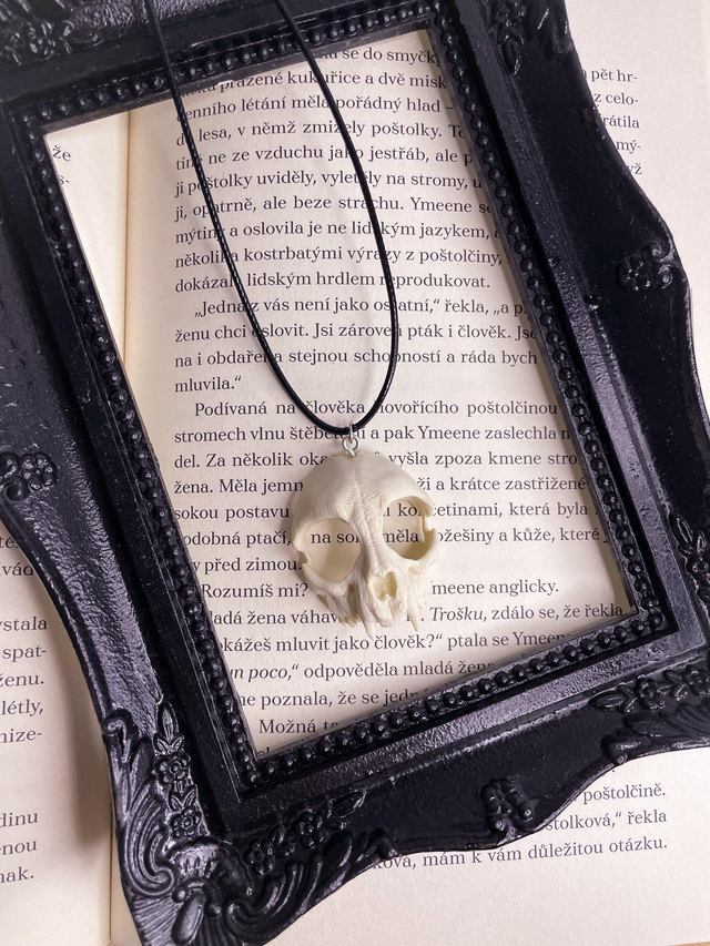 Náhrdelník inspirovaný kosterními strukturami a temnou estetikou osteologie je vytvořen pomocí 3D tisku – nejde o skutečné kosti. Čistý, syrový design nechává vyniknout tvar a symboliku, která odkazuje na cyklus života a smrti.