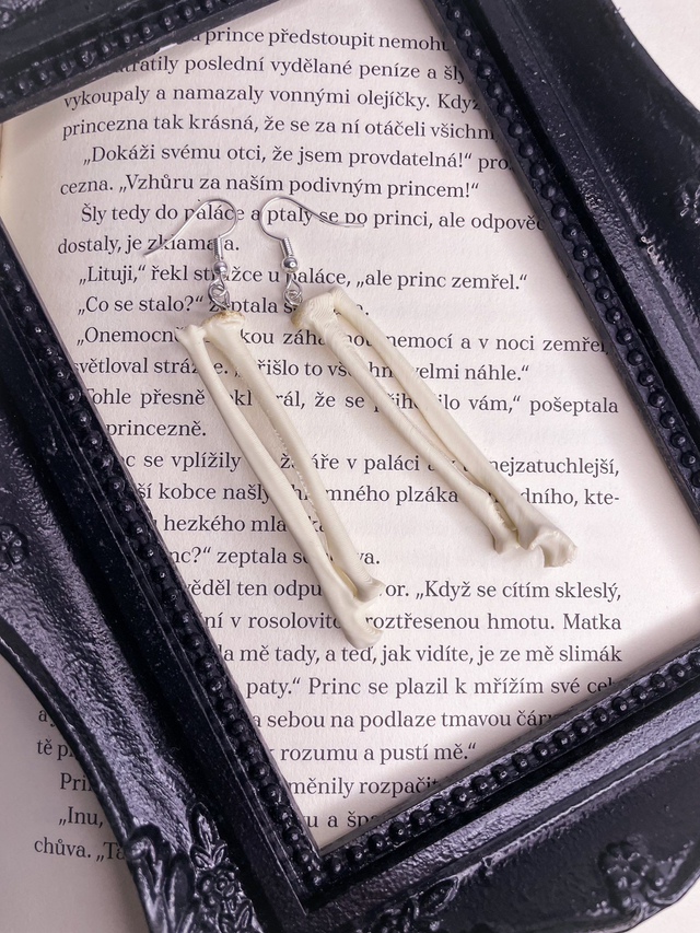 Motivy kostí a lebek, vytvořené pomocí 3D tisku (nejde o skutečné kosti), nesou temnou energii, mystiku a respekt k přírodním cyklům. Každý pár působí jako talisman – výrazný, magický a naprosto originální. Každý kousek je jedinečný.