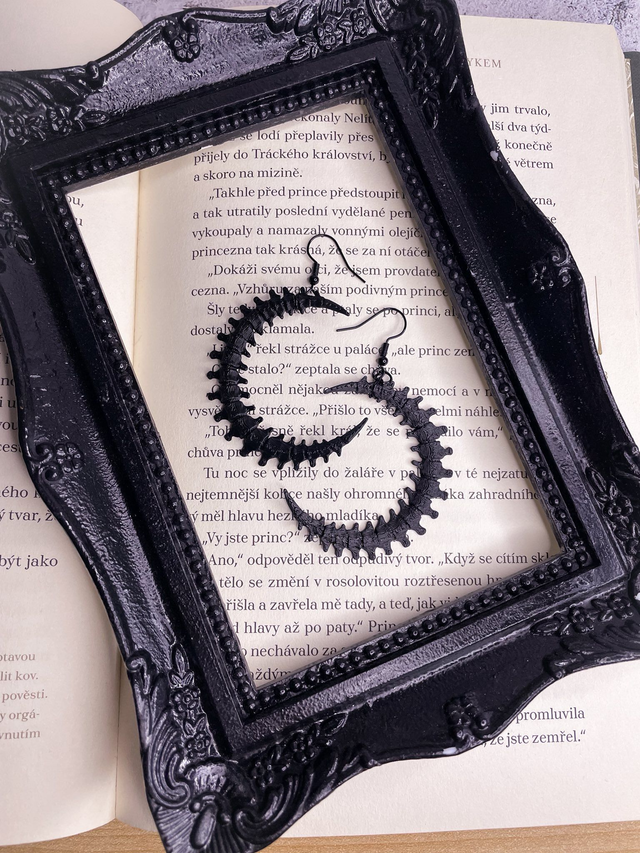 Motivy kostí a lebek, vytvořené pomocí 3D tisku (nejde o skutečné kosti), nesou temnou energii, mystiku a respekt k přírodním cyklům. Každý pár působí jako talisman – výrazný, magický a naprosto originální. Každý kousek je jedinečný.