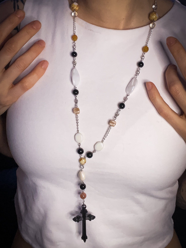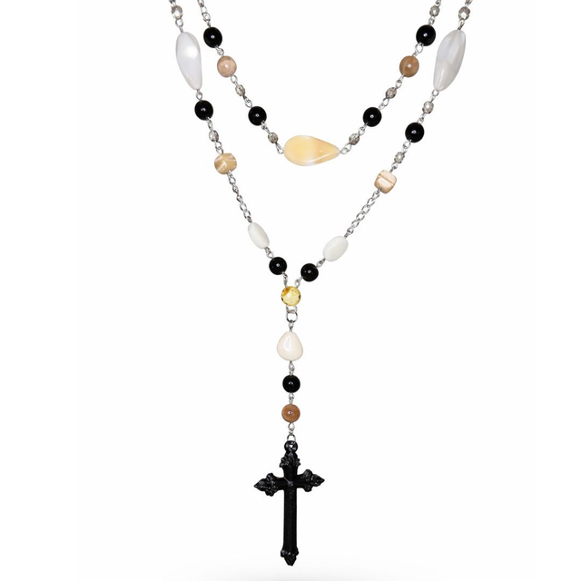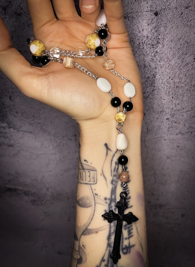 Satanic Rosary Black creme Pentagram a kříž Krucifix