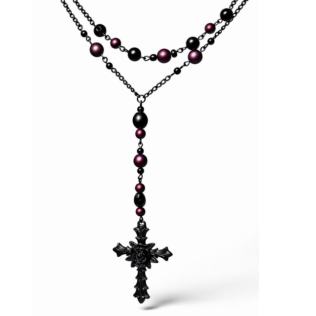 Satanic Rosary Burgundy Pentagram a kříž Krucifix