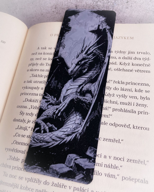Pro všechny milovníky knih a fantasy! Tato tenká a pružná záložka oživí vaše čtenářské zážitky. Vyrobena metodou 3D tisku (3D malba). Originální grafika, která zaujme na první pohled.
